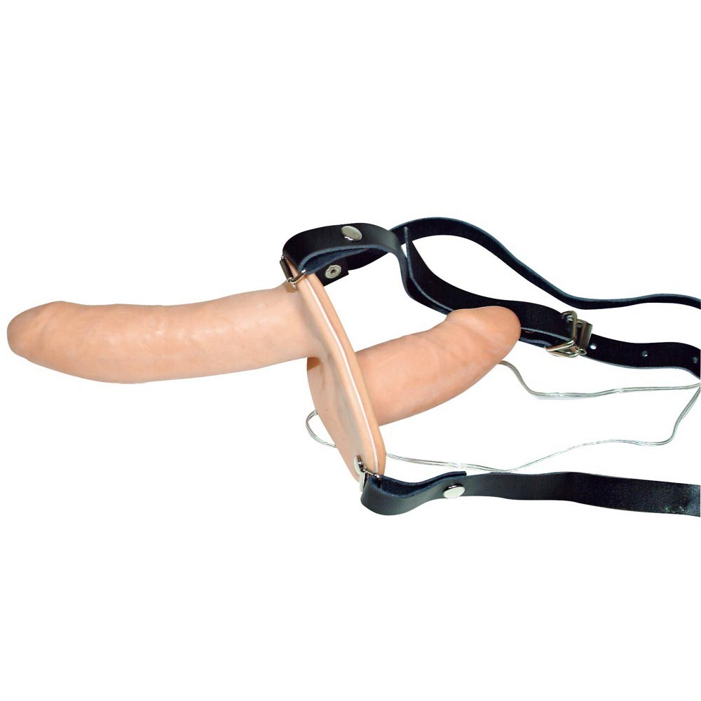 Διπλός δονητής φυσικού χρώματος από υλικό λάτεξ με δύο χειριστήρια και ρυθμιζόμενη δόνηση. Μεγάλος δονητής 17 εκ. και διάμετρο 4 εκ.